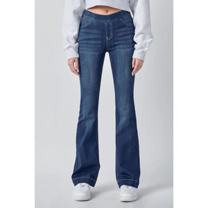 Get comfortable and stay stylish with The Ivy Jeggings. These ultra stretchy jeans feature a medium wash and flattering flared fit, along with light whisker detailing for a trendy touch. With two faux front pockets and two back real pockets, these jeggings are both functional and fashionable.
