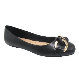Featuring a sleek synthetic upper and a dazzling gold embellishment, these slip-ons add a touch of sparkle to every outfit. The padded footbed keeps your feet comfy from morning to night, perfect for busy days or casual nights out.