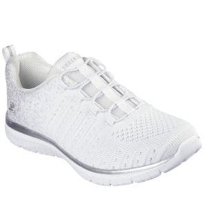 The metallic engineered knit upper paired with stretch laces not only provide a comfortable fit, but also add a touch of style. And with a cushioned Skechers Memory Foam™ insole, every step will feel like walking on clouds.